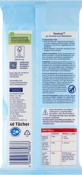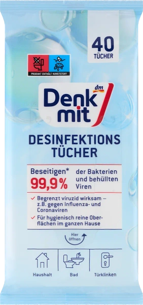 - Chusteczki dezynfekujące Denkmit eliminują 99,9% bakterii i 90% alergenów.