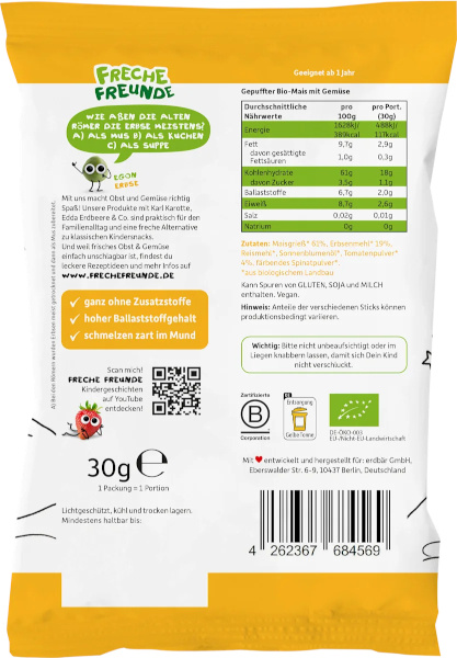Freche Freunde Bio Paluszki Kukurydziane z Groszkiem
