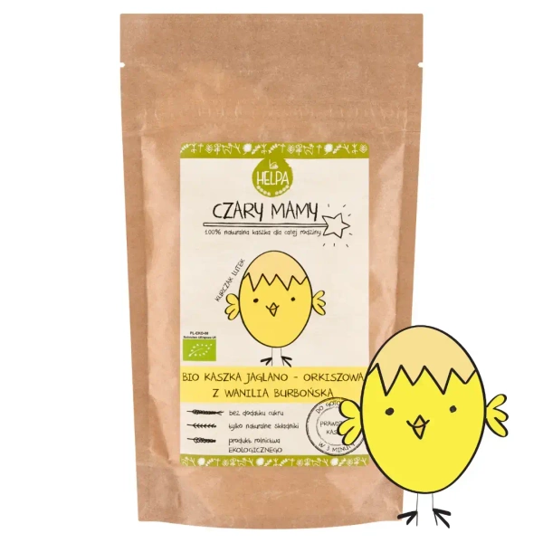 Data ważności koniec 06/2024r. Pyszna, zdrowa i sycąca kaszka jaglano-orkiszowa z dodatkiem wanilii burbońskiej dla dzieci i rodzin szukających naturalnej żywności, która jest jednocześnie wygodna i szybka w przygotowaniu. Jagła to najstarsza znana kasza i otrzymuje się ją z nasion prosa. Pod względem wartości odżywczej dorównuje kaszy gryczanej. Ma mało skrobi, za to dużo łatwo przyswajalnego białka. Wyróżnia się najwyższą zawartością witamin z grupy B: B1, (tiaminy), B2 (ryboflawiny) i B6 (pirydoksyny) oraz żelaza i krzemu. Natomiast orkisz to dawny gatunek pszenicy, znany już w starożytności. Zawiera więcej białka, kwasów tłuszczowych nienasyconych, witamin oraz składników mineralnych niż pszenica zwyczajna. Jest przy tym lekkostrawny i łatwo przyswajalny. Gluten orkiszowy jest także lepiej tolerowany niż pszenny. Wanilia burbońska jest najbardziej szlachetnym i zarazem najlepszym gatunkiem wanilii i pochodzi z Madagaskaru. Naturalne, ekologiczne zboża zawarte w składzie kaszki zostały starannie wyselekcjonowane i odpowiednio rozdrobnione, wymagają gotowania, zaledwie 2-3 minuty. Kaszki firmy HELPA są produktami ogólnego przeznaczenia żywieniowego tak jak klasyczne kasze ekologiczne. Nie mają dedykowanego wieku bo są produktem naturalnym i przeznaczonym dla wszystkich niezależnie od wieku. Moment podania trzeba uzależnić od dziecka, mając na uwadze fakt ze kaszki nie są papką ale mają konsystencję zbliżoną do kaszy manny. W związku z tym, że kaszki firmy Helpa są w pełni ekologiczne, a także ich opakowanie jest eko produkty posiadają krótki termin przydatności do spożycia. Przykładowa data 12/2022 oznacza, że produkt jest ważny do końca grudnia.