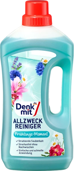 - Denkmit Uniwersalny Środek Czyszczący Wiosenne Chwile skutecznie usuwa uporczywe zabrudzenia ze wszystkich zmywalnych powierzchni, pozostawiając świeży, wiosenny zapach.