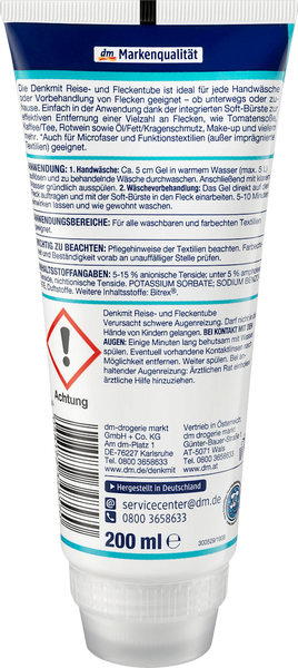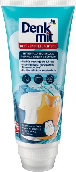 • Denkmit Żel do Prania i Usuwania Plam w Podróży z wbudowaną szczoteczką skutecznie usuwa plamy i nadaje się do prania ręcznego, idealny w podróży.