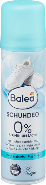 Balea Schuhdeo to skuteczny dezodorant do obuwia, który zapewnia długotrwałą świeżość i higienę. Dzięki formule bez aluminium neutralizuje nieprzyjemne zapachy, pozostawiając przyjemny, świeży aromat. Zawiera naturalne ekstrakty z mięty i zielonej herbaty, które działają odświeżająco i antybakteryjnie. Idealny do codziennego stosowania, szczególnie w obuwiu sportowym i codziennym.